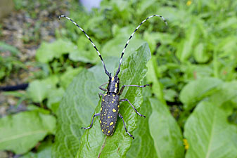 日本全土に分布し食樹も多く、よく見られるカミキリムシです。