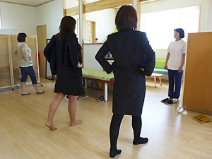 次に、生活の中で気軽にリフレッシュできるエクササイズをお教えし、実際に変化を体験していただきました。